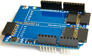 Jee Labs Plug Shield![]() Shield URL: Plug Shield The Plug Shield allows using I2C-based JeePlugs with any Arduino or compatible clone. It acts as interface between the hardware I2C port and the plugs. There is a level converter on board, as well as a 3.3V regulator to supply power to the plugs. The reset button and ISP signals are duplicated on the shield. Open Source: |