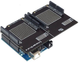 Liquidware Double-Wide Extender Shield![]() Shield URL: Double-Wide Extender Shield Plug in an Arduino to the underside and it replicates all of the pins in two locations so you can istall multiple shields side-by-side. The pin replicators keep everything connected. Open Source: Unknown |