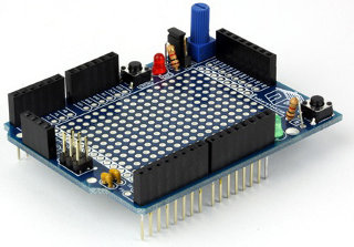Maker Shed MakerShield![]() Shield URL: MakerShield Unlike other prototyping shields on the market, the MakerShield allows you to create the circuits the way you want, and easily make as many changes as needed without having to solder. All the major components and pins of the MakerShield are user-assignable. This allows you to simply jump from the appropriate components header pin to any of the pins on the micro-controller. You can make as many changes as you want, and all without any soldering required.