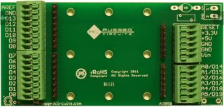 Rugged Circuits Aussie Shield![]() Shield URL: Aussie Shield The Aussie Shield is the shield that sits "down under". It is compatible with the Arduino Uno, Duemilanove, and Mega boards (and other compatible boards). The shield extends the connection pins out to 28 quick-connect terminals that accept 20AWG to 24AWG wire. Unlike screw terminals, these quick-connect terminals require no tools: just push, insert wire, and release. Use the Aussie Shield for easy breadboarding, swapping Arduinos in fixed lab or art installations, using stacking shields standalone without an Arduino, or cross-wiring shield pins. Open Source: Unknown |