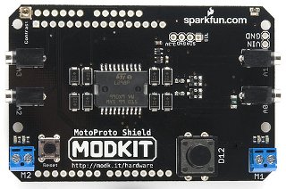 Sparkfun ModKit MotoProto Shield![]() Shield URL: ModKit MotoProto Shield The Modkit MotoProto Shield for Arduino that makes it easy to connect up to 4 sensors and control two DC motors as well as a 16X2 character LCD. The sensor jacks accept 2.5mm cables and provide access to VCC, GND, and an analog input. Open Source: Unknown |